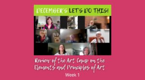 - Week 1 – Review of and discussion about last month’s Elements and Principles of Art – digging into what they mean and how they can shift your work